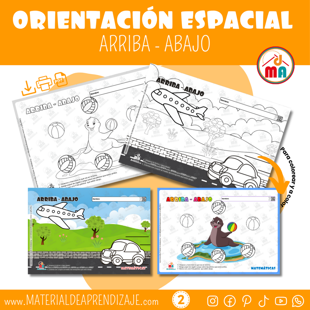 馃摑2 fichas para trabajar arriba - abajo en su versi贸n a color en formato PDF.