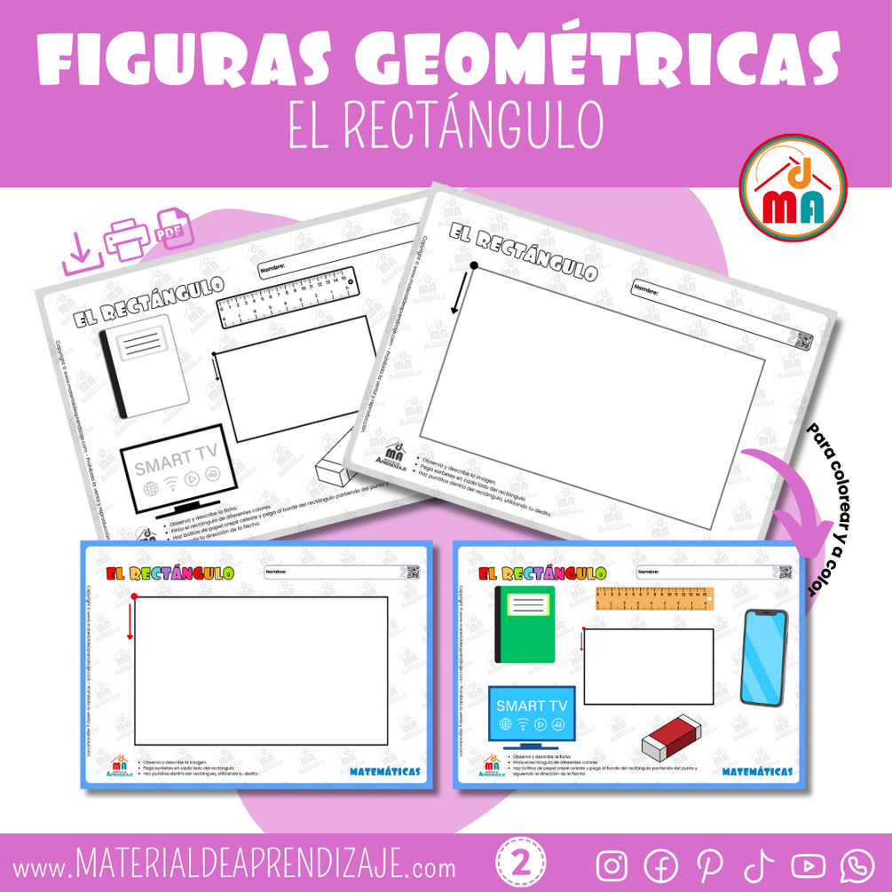 📝2 fichas para trabajar el rectángulo en su versión a color en formato PDF.