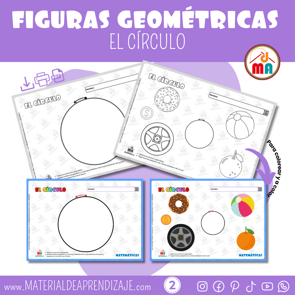 📝2 fichas para trabajar el círculo en su versión a color en formato PDF.