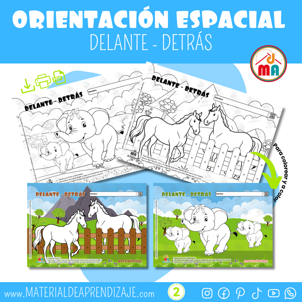 📝2 fichas para trabajar el delante - detrás en su versión a color en formato PDF.