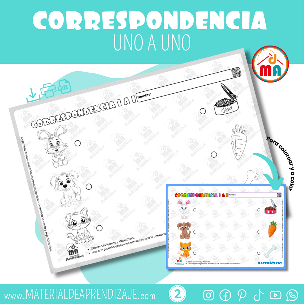 Correspondencia 1 a 1 2 a帽os - Material de Aprendizaje